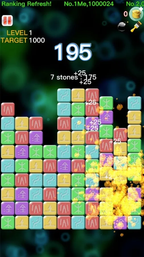 - Click to remove the same stone. Eliminate once more, and finally the rest of the stone, the less the higher you score!