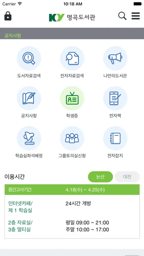 도서관 이용안내, 이용시간, 찾아오는 길 등을 제공한다.