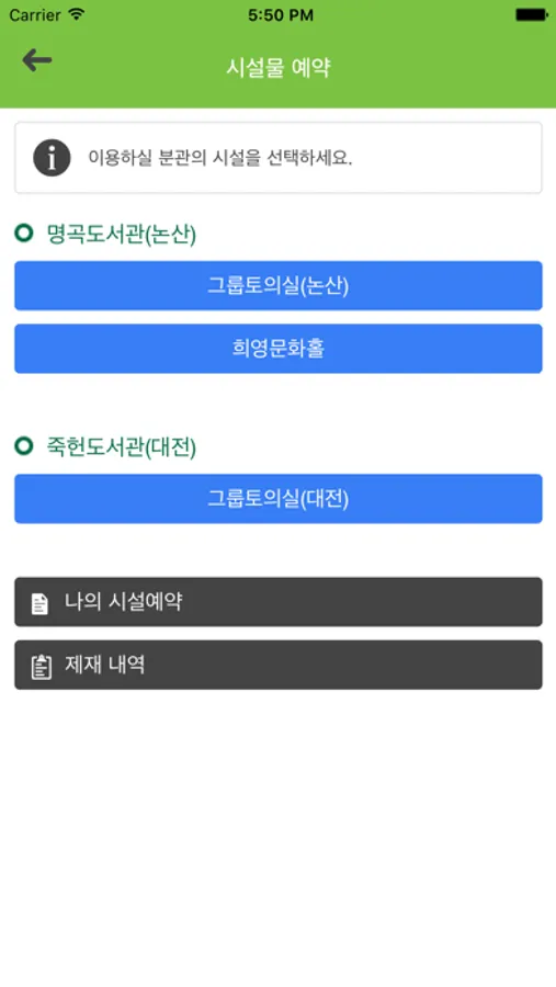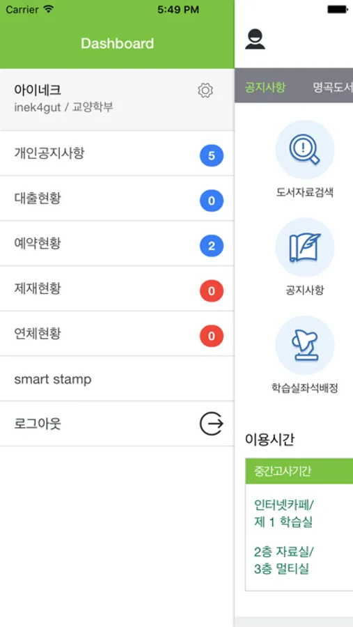 열람실 배정 및 시설물 예약 서비스를 제공한다.