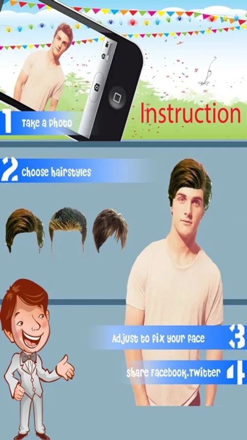 Hairstyle booth will enable you simulate new hairstyles with over 60 nice styles is include.