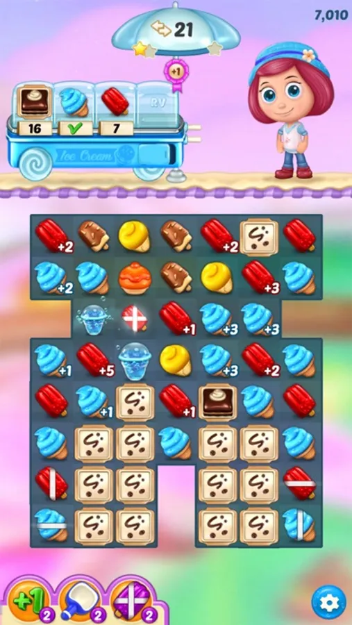 Ice Cream Paradise is a colorful match-3 puzzle adventure that lets you save the world one ice cream match at a time. Melissa is on a quest to serve up smiles to the citizens of Savoreaux. To do that, she’ll need to match ice cream flavors by stacking three or more of them together. Matching flavors produces the most delicious treats one can imagine, which is exactly what these sad people need! And when the going gets tough, Melissa has some incredible match-3 power-ups she can unleash to produce an epic flavor explosion!