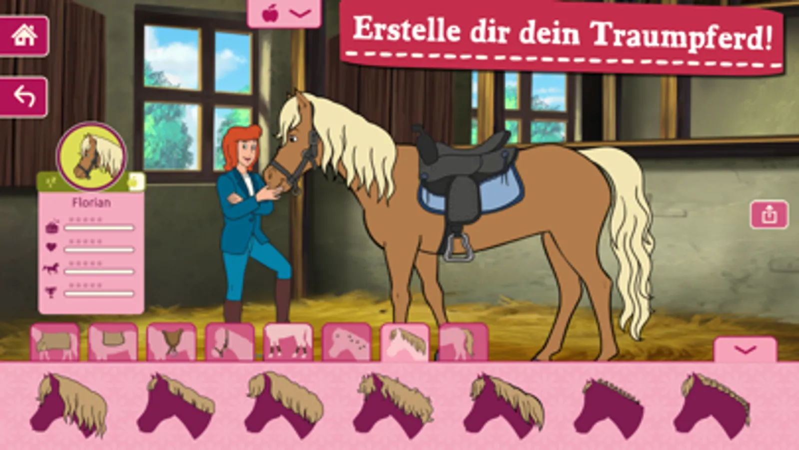 Hier kannst du gemeinsam mit der Junghexe Bibi Blocksberg und ihrer Pferde-Freundin Tina so einiges erleben: Kümmere dich um deine eigenen Pferde, reite sie aus oder trainiere sie im Springreiten. Überall auf dem Reiterhof kannst du tolle Bilder gestalten und damit deine eigenen Comics kreieren. Während dem Spielen kannst du außerdem das spannende Bibi & Tina-Hörbuch „Schatten über dem Martinshof!“ innerhalb der App anhören. Klingt toll, oder?