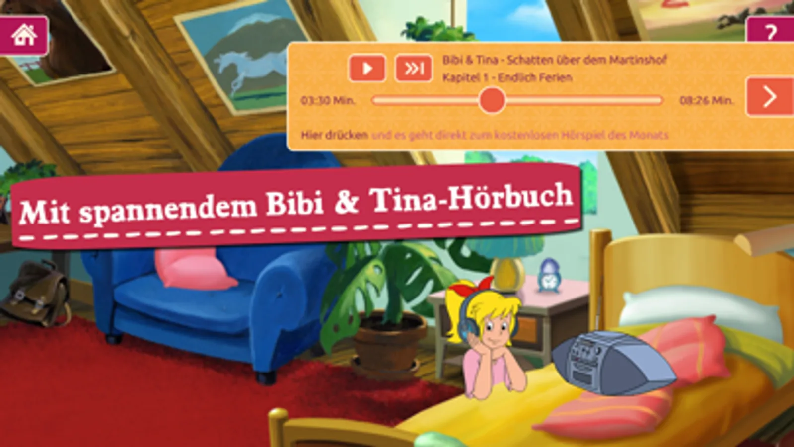 • die Original-Stimmen der Bibi & Tina-Hörspiele sowie hochwertige Grafiken erwecken die App zum Leben