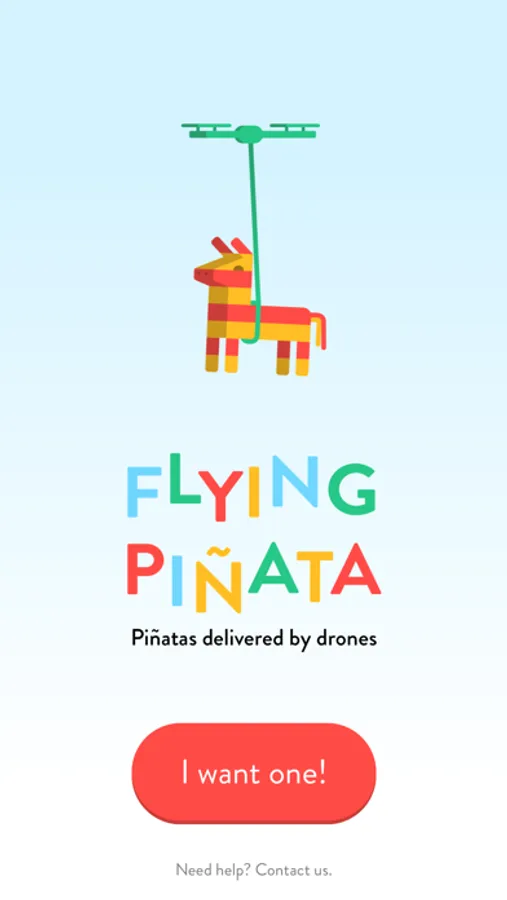 Everybody loves piñatas! Now you can get this ultimate party item delivered to your home by drone. Need to spice up your birthday party? Need something extra for the family gathering? Or maybe even suprise a good friend? No problem, just select when you want it and where you want it delivered, and experience the magic of the Flying Piñata yourself. Let the party begin!