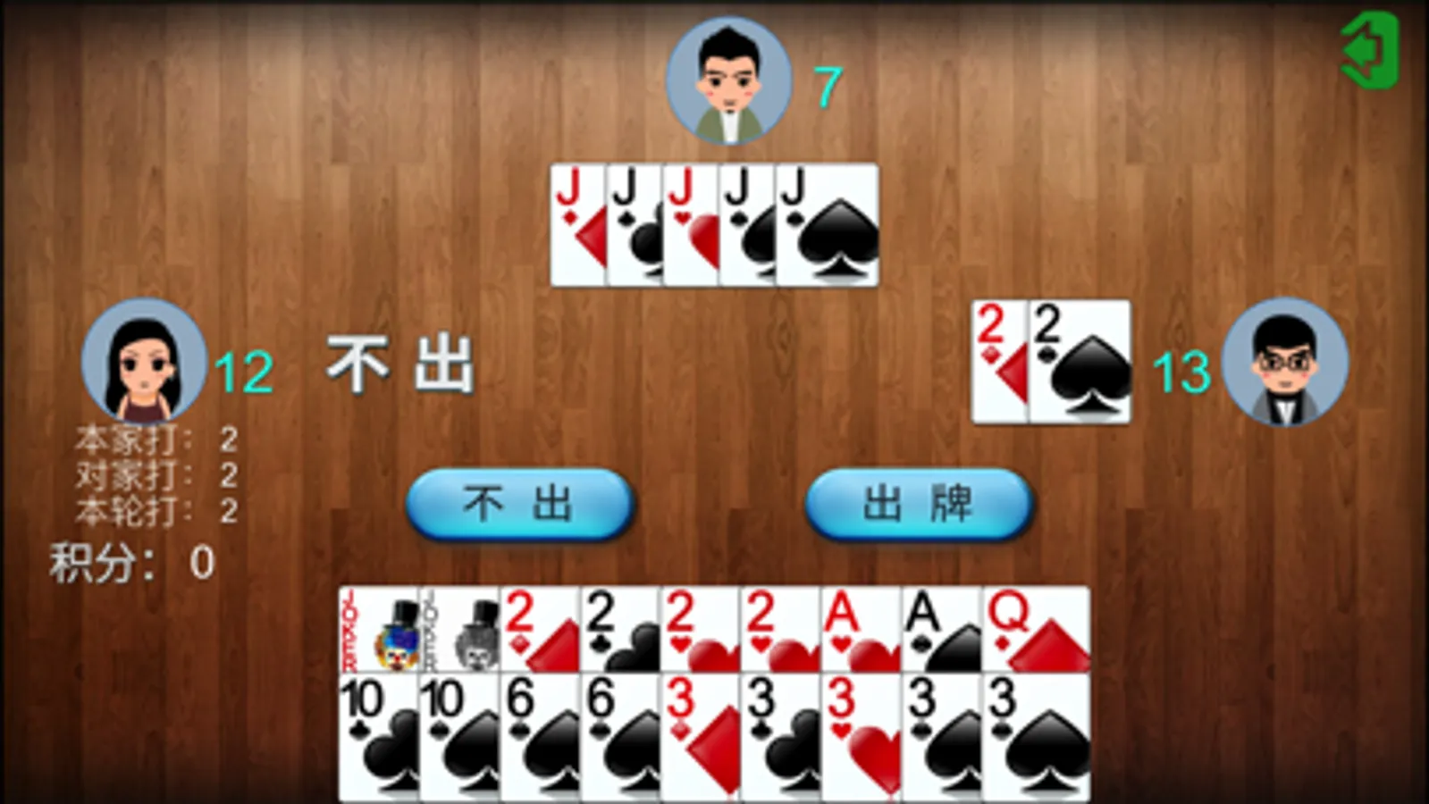 3、超强人工智能,高超的出牌技巧,为玩家提供了强劲的对家和对手