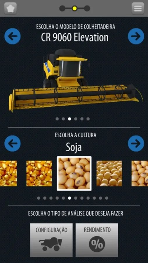 Este aplicativo foi desenvolvido pensando no agricultor Brasileiro auxiliando no uso para melhor configurar sua colheitadeira, avaliar índices de perdas, comparar performances e buscar os melhores ajustes maximizando o desempenho do produto com maior aproveitamento, de forma fácil e rápida.