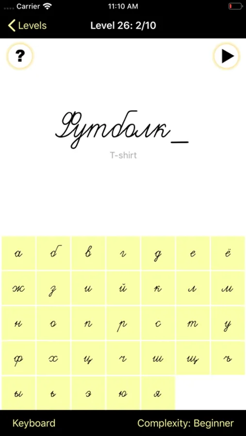 - Advanced: the words will not be pronounced at all, your challenge is to use the English translation to recall the word in Russian and spell it correctly.