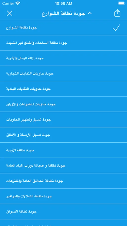 19- مؤشر جودة نظافة الساحات العامة والميادين والقطع غير المشيدة.