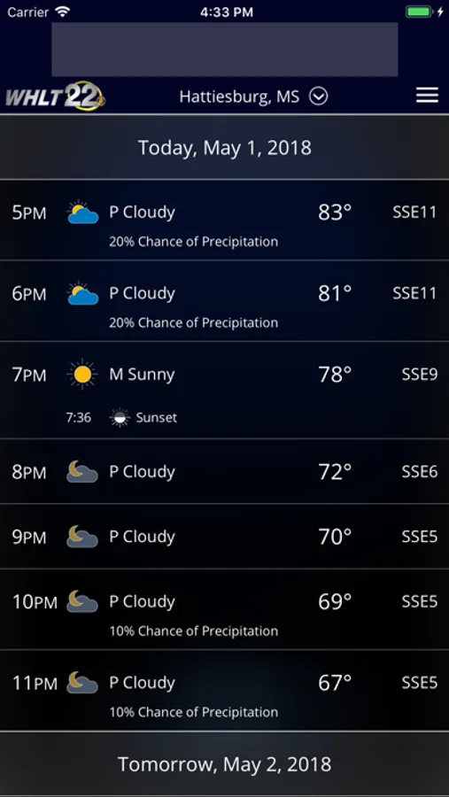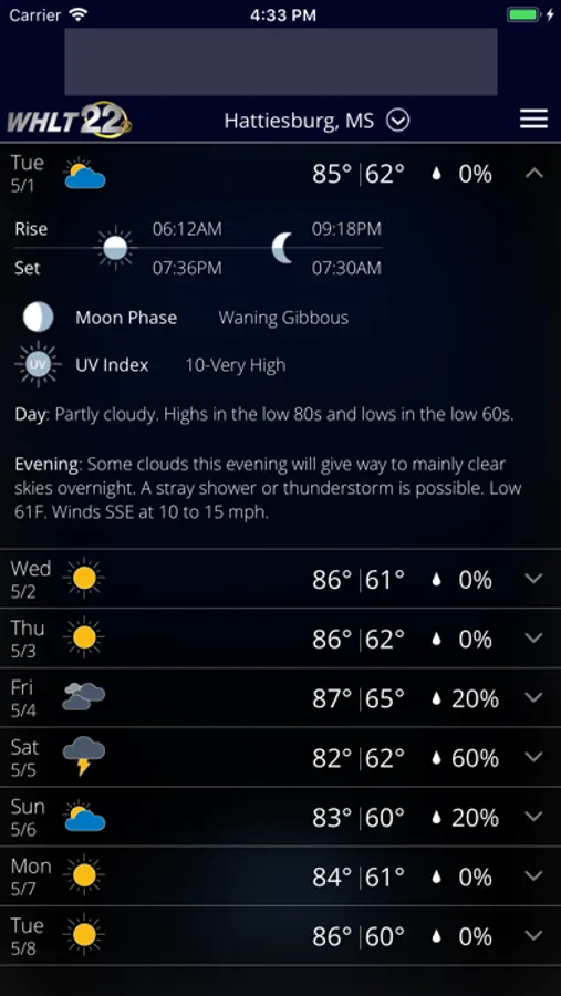 Never let the weather catch you by surprise again. The trusted weather experts at Storm Team 22 deliver Hattiesburg, South Mississippi's most accurate hour-by-hour forecast for the next day and for the week ahead. Unlike other weather apps, you'll get a local forecast that is customized for you.