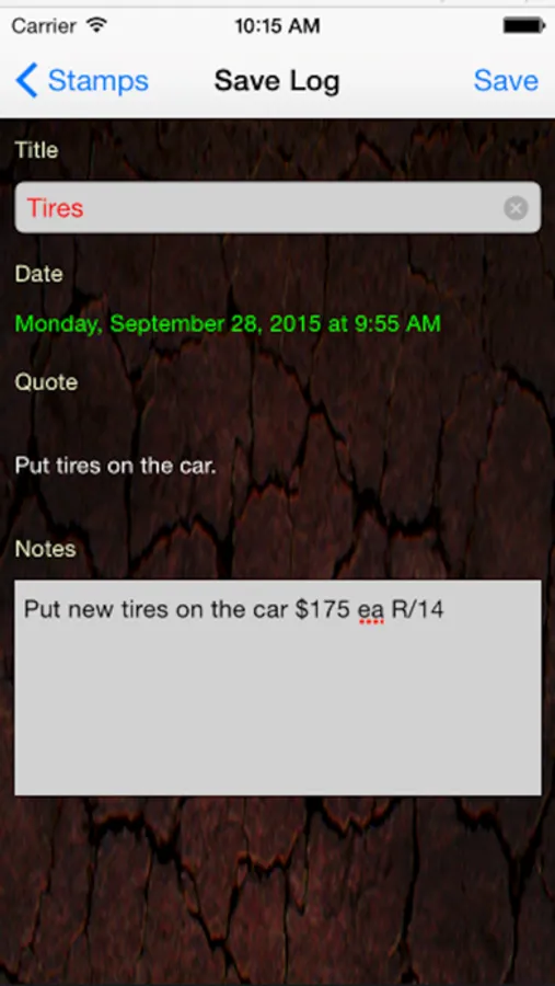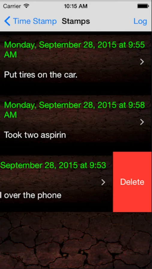 This is a simple way to note what time you did something. Use it to log what time you start and finish work, took medicine or when you put tires on your vehicle. Use it for anything you want to remember what Date and time you did something. No graphs No Charts Just simple.