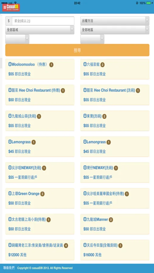 大量兼職空缺:包括日式、中式、西式餐廳及酒店侍應,帶位、洗碗、廚房、甜品屋及會展起場等,部分更以現金即日出糧,達到真正的「選擇多、出糧快!」。