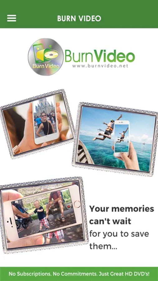 Burn Video provides a solution to every smart phone owner's dilemma. You have precious memories recorded on your iPhone or iPad, taking up space in a cloud and never being viewed again. We help you preserve and share your memories on something tangible where they are forever safe. Keep them for yourself or send as gifts from directly inside the app.