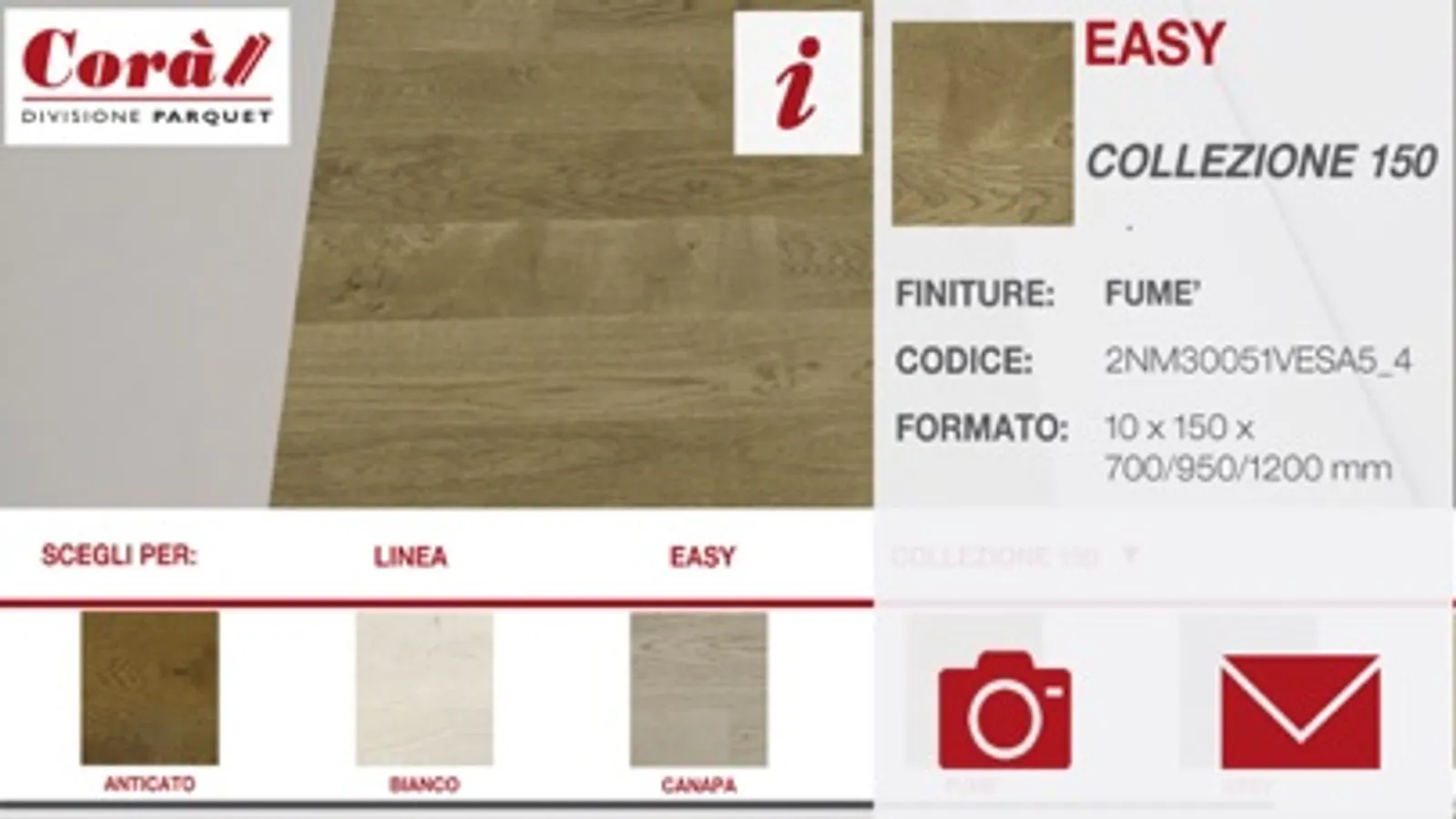 Thanks to augmented reality, Corà Parquet Live app allows you to display the wood flooring products in your own environment to have a live preview on the final result after laying.
