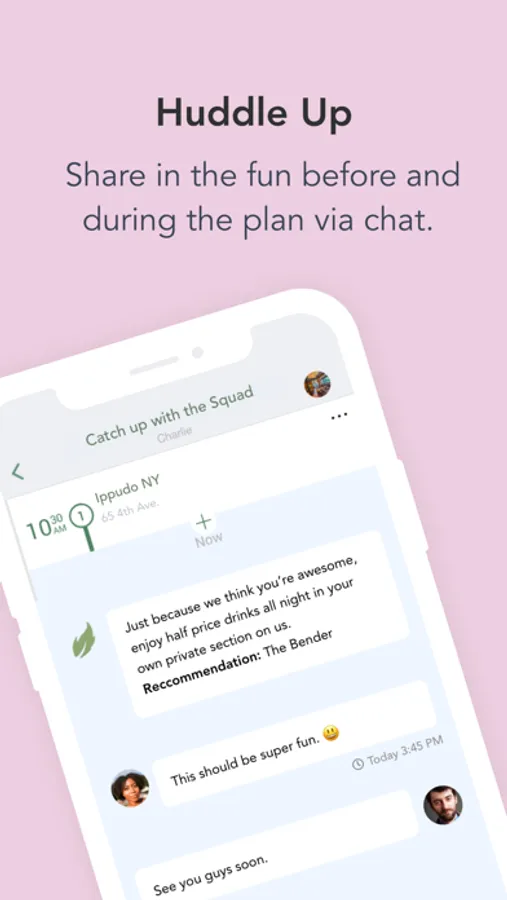 Leaf makes getting together hassle-free. Discover the hottest locations and make group plans with your friends. Whether it's a movie showing, followed by fine dining, bowling, or dancing, Leaf does all the heavy lifting helping you pick the perfect day, time and location based on your group's preferences.