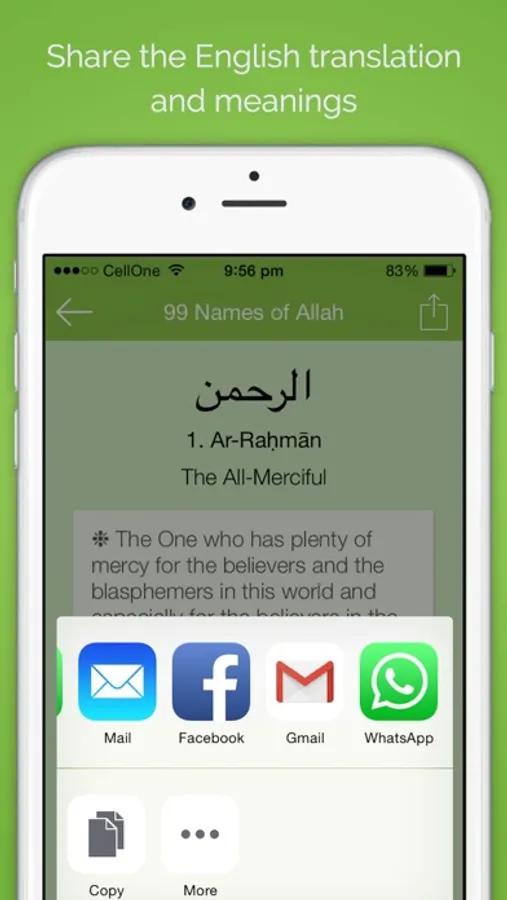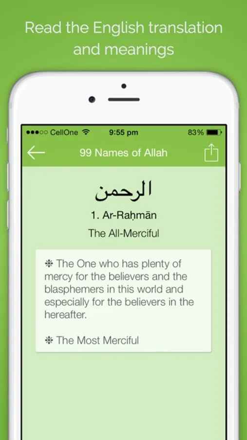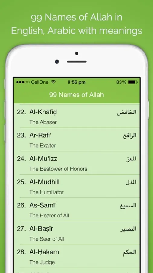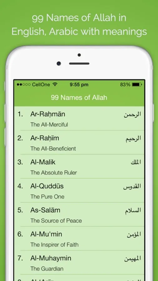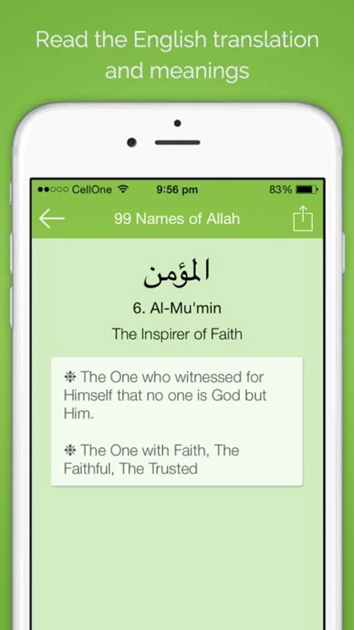 • Read the English Translation of the Meaning of Quran in Description for each name.