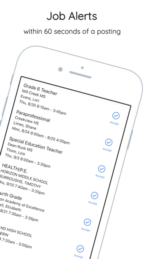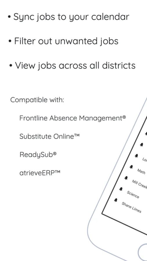 Quickly accept the jobs you want with fast and personalized job alerts, job booking, and calendar syncing for substitute teachers using Frontline Education Absence Management (formerly Aesop), ReadySub, Substitute Online, or atrieveERP!