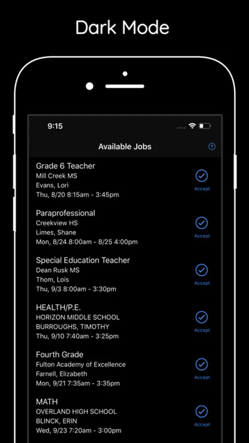 • Provide you all the job details you need including teacher notes, GPS directions to the school, and school contact information.