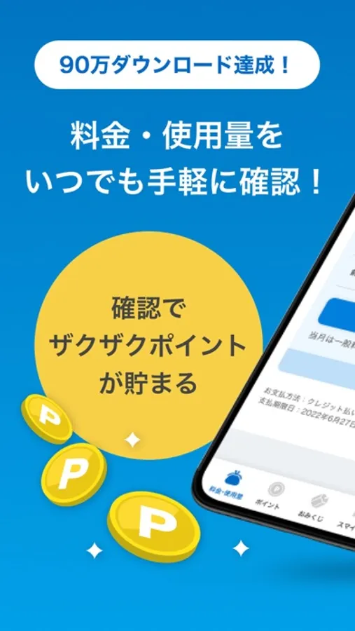 -毎月の料金・使用量の更新や、お楽しみコンテンツ・プレゼント企画の更新情報をプッシュ通知で受け取れます。