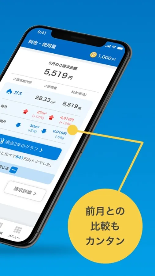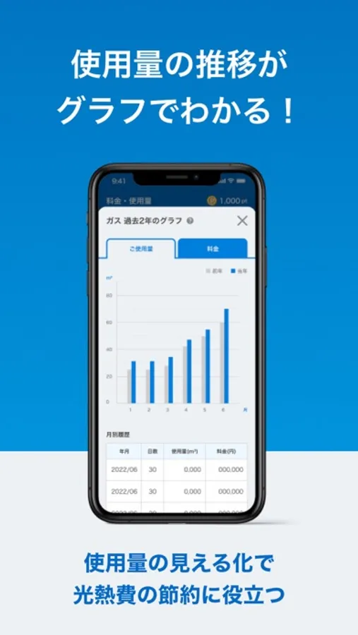 -前月・前年同月との比較も簡単で、光熱費の節約にも役立ちます。