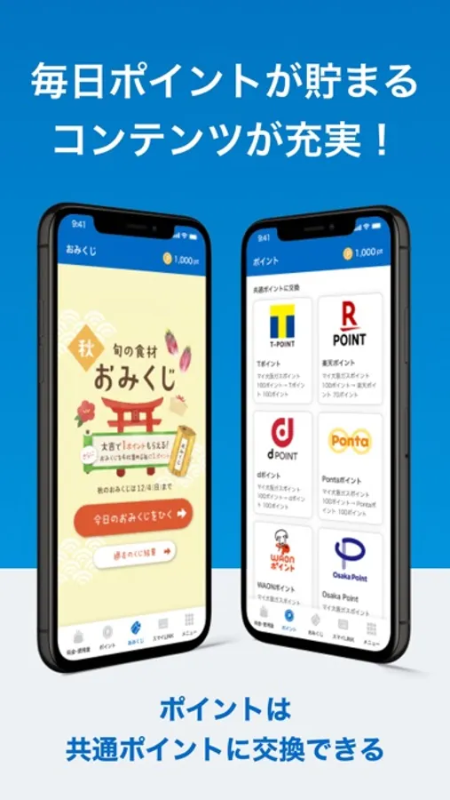 -毎日楽しめるアプリ限定コンテンツです。おみくじを4回引く毎に1ポイント獲得、さらに大吉が出たら1ポイントがもらえます。
