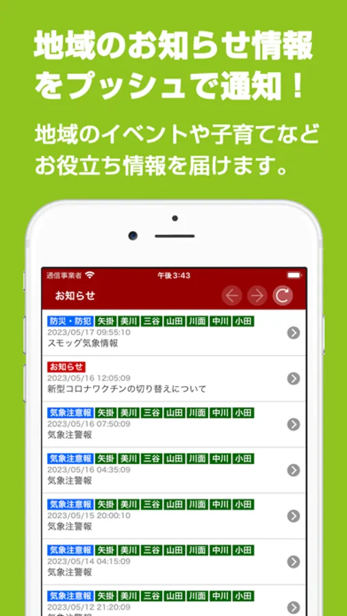 暮らしに便利な情報をプッシュ通知でお知らせします。