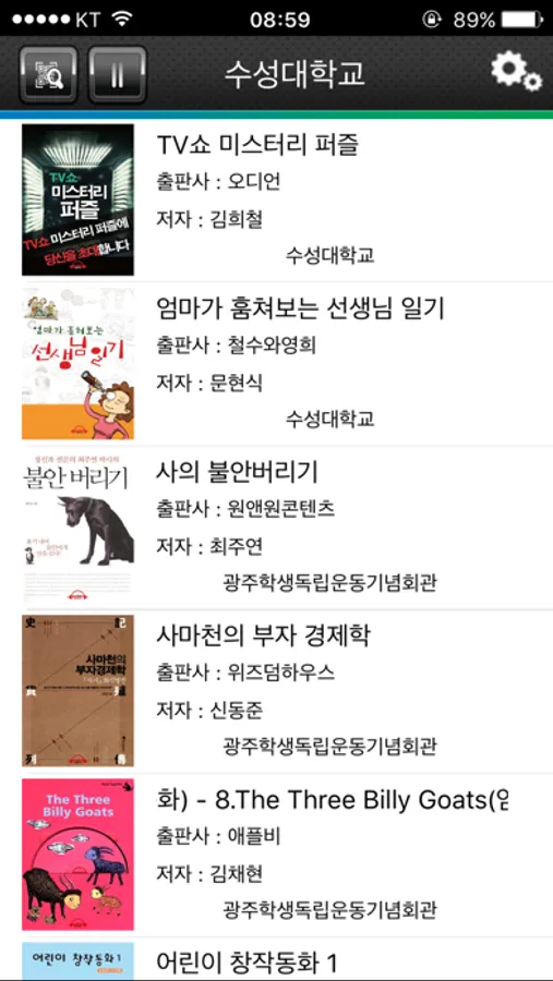 오디언 도서관 키오스크(Kiosk) 전용 앱니다.