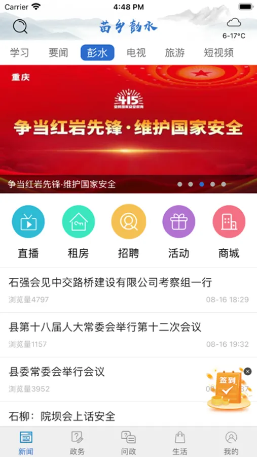 苗乡彭水手机客户端,是基于智能手机上的移动应用程序,以本地资讯服务为基础,整合本地新闻、政务公开、公共服务、周边查询等资讯内容为网民提供更为便捷的服务;支持个性化订阅、高速浏览、社会化媒体分享、活动参与等功能,在现有基础上提供了政府的影响力,降低了用户服务门槛,扩大了政务的服务范围和服务对象 ,提升了整体政务服务的互动性、便捷性,拓展了政府服务渠道,全方位满足了各个层次用户需求,增加了用户体验度及粘合度,使更多人可以更快捷的了解彭水。