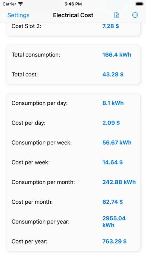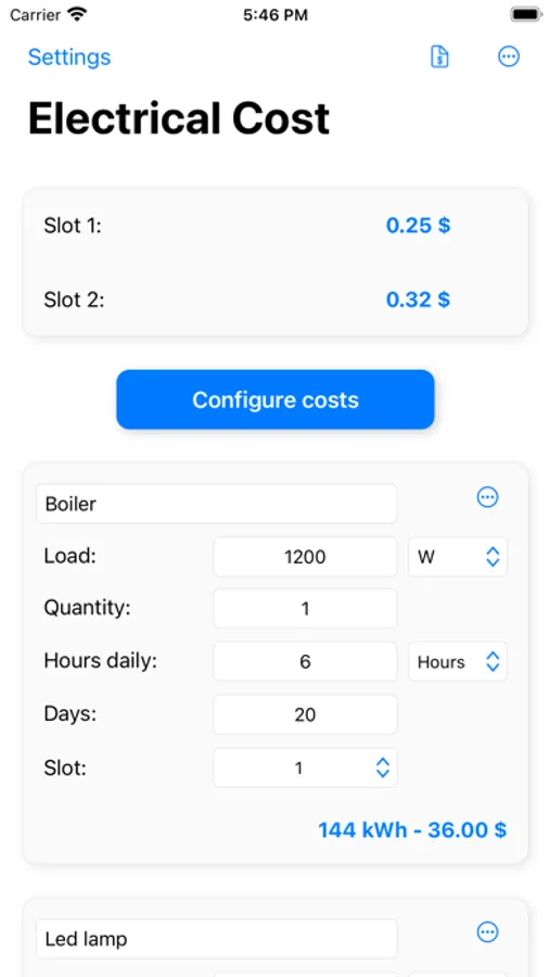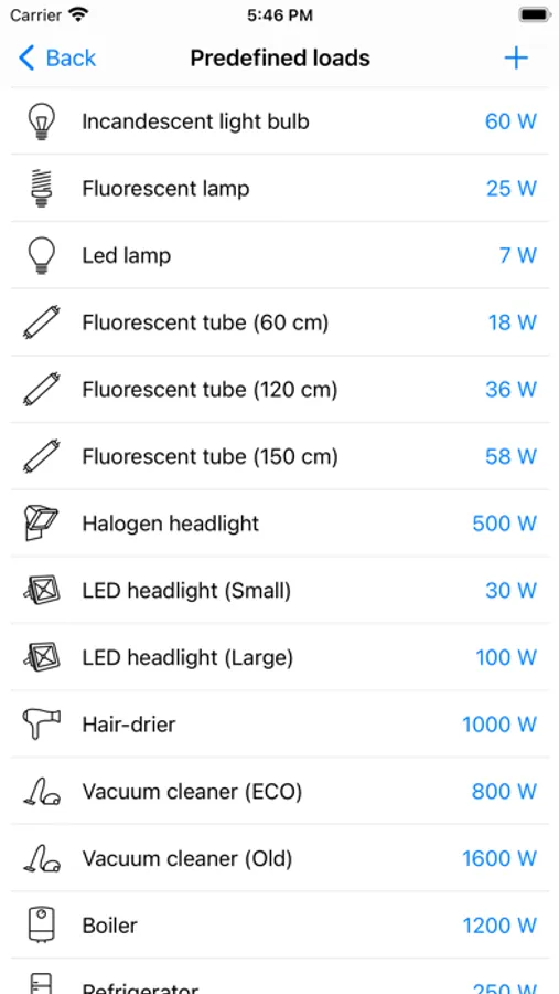 Calculation of theoretical energy spending based on the power used by household appliances.