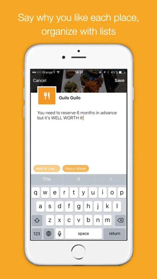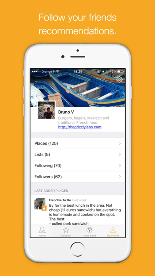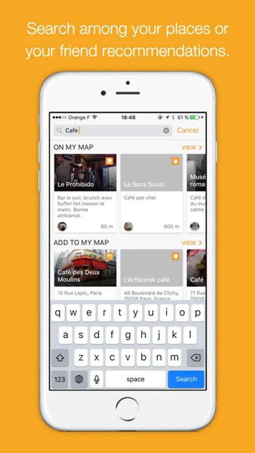 Create the map of your favorite places (restaurants, bars, cafés, brunch places, shops, parks…) and get recommendations from your friend's map.