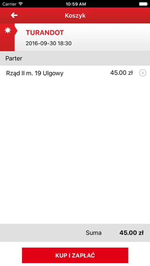 Możesz płacić za bilety przelewem bankowym albo kartą płatniczą. Płatność jest realizowana natychmiastowo. Po zakupie aplikacja pobiera bilet w formie QR kodu, który należy okazać obsłudze przy wejściu na spektakl.