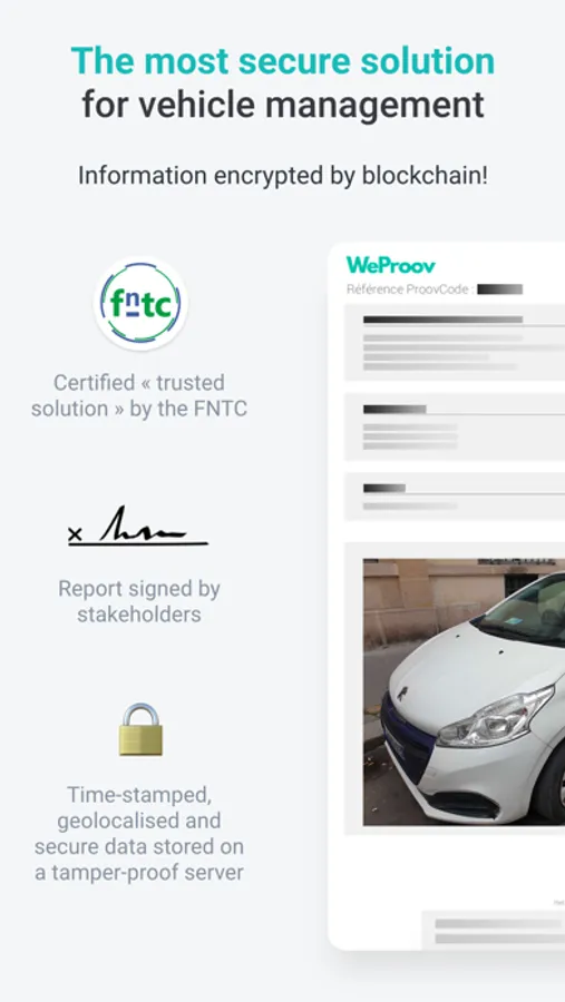 WeProov Partner can only be used by automotive professionals and allows you to create a multitude of certified inspection protocols adapted to your activity.