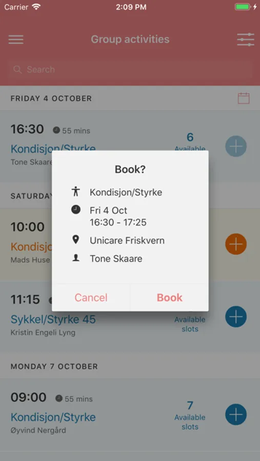 Med denne appen kan du enkelt booke plass på gruppetrening hos Unicare Friskvern.