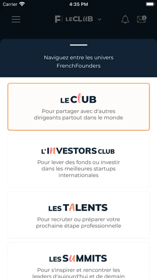 Votre business club, on-the-go : un accès rapide aux membres et à la plateforme FrenchFounders, et le moyen le plus efficace d’identifier des opportunités pour votre business.