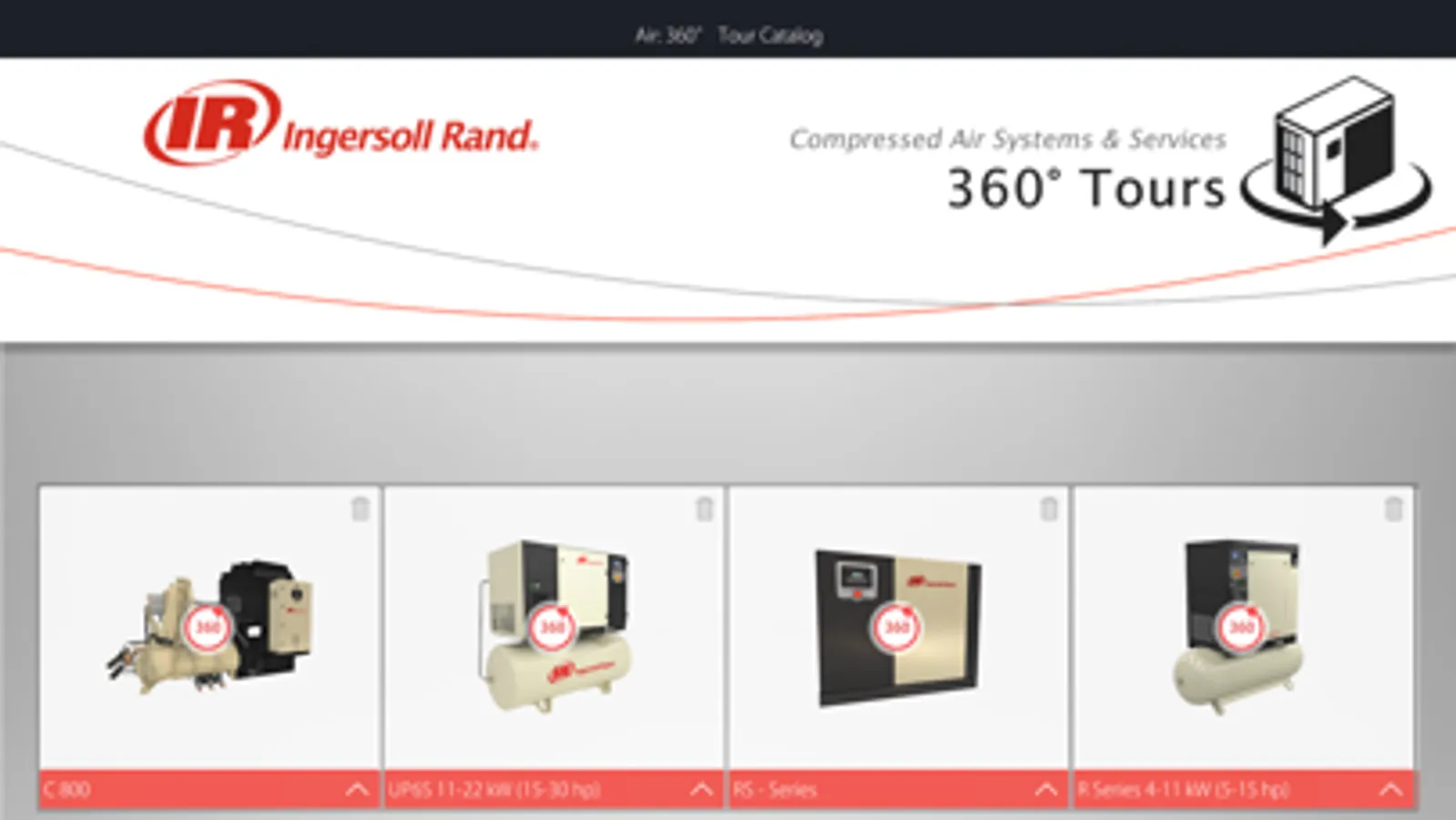 The Ingersoll Rand 360 Tour provides a high resolution interactive 3D rendering of Air Compressors on mobile devices. Interact with your air compressor from all angles, both internally and externally. The application highlights product features and benefits. Additional Ingersoll Rand product and service information is available at our website or by contacting your local Ingersoll Rand sales and service provider.