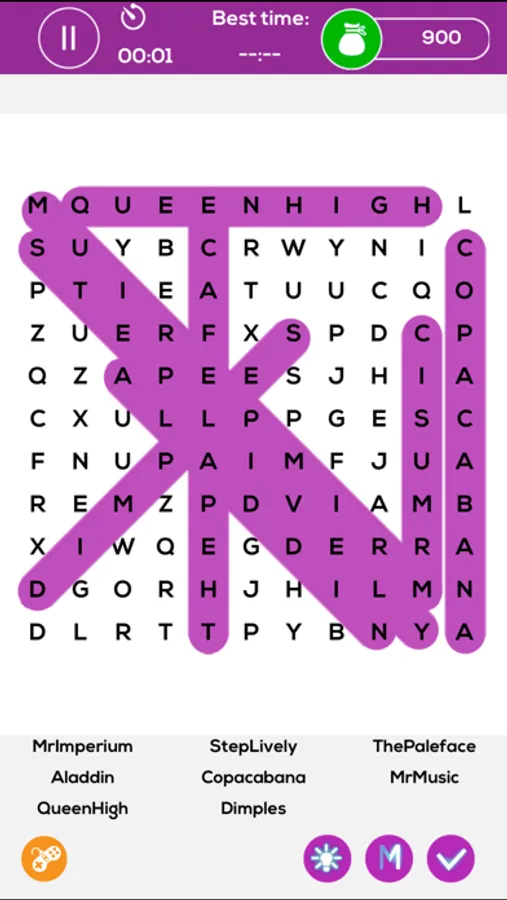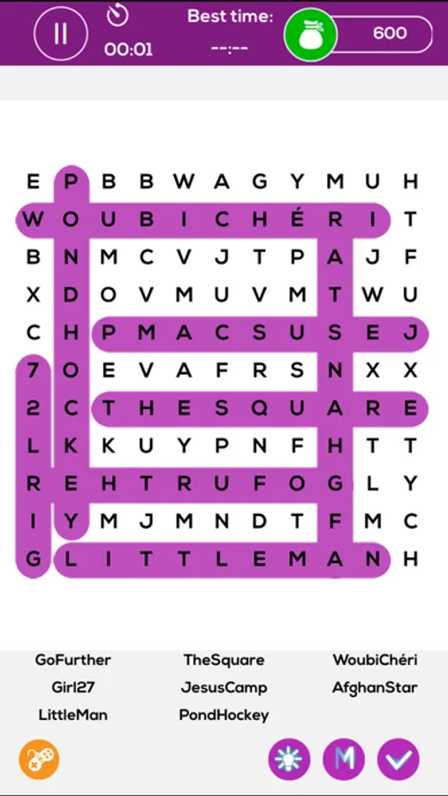 - Find the words faster and share your best time on your social network & earn 100 game coins each time you share.