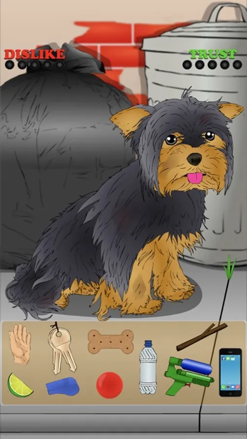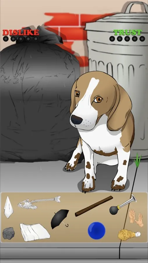 Earn this little puppy's trust by giving him the 5 objects he likes. Pick up 1 of the 10 objects from the bottom of the screen and a flashing dog paw will appear. Drag the object to the flashing paw and hopefully the puppy will like the object. Be careful when choosing the objects, if you give the dog 5 objects he doesn't like, the game will be over.