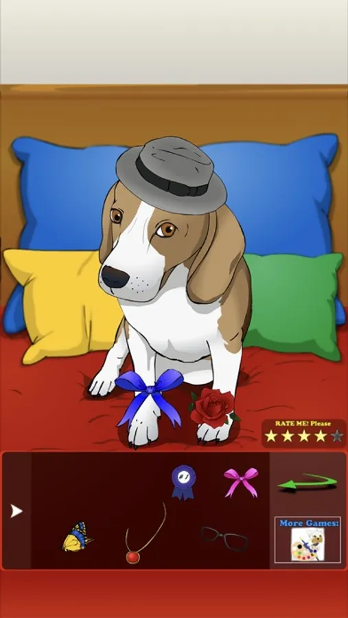 After earning the dog's trust, play dress up with the dog. Slide the object you want to try on the dog. Double tap on the flower, necklace, ribbon, etc... to get different colors and styles.