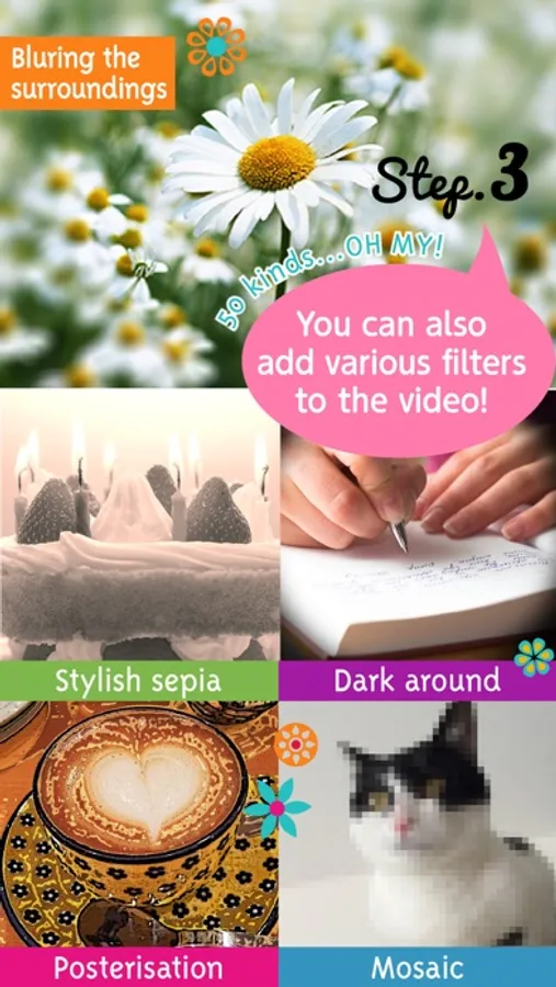 In the edit screen, the filter can be changed by swiping left and right directly at the video which is being viewed.