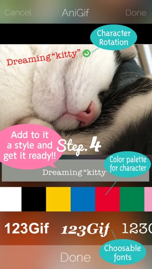 You can send or share your GIF animation by tapping "Share and Send!" button.