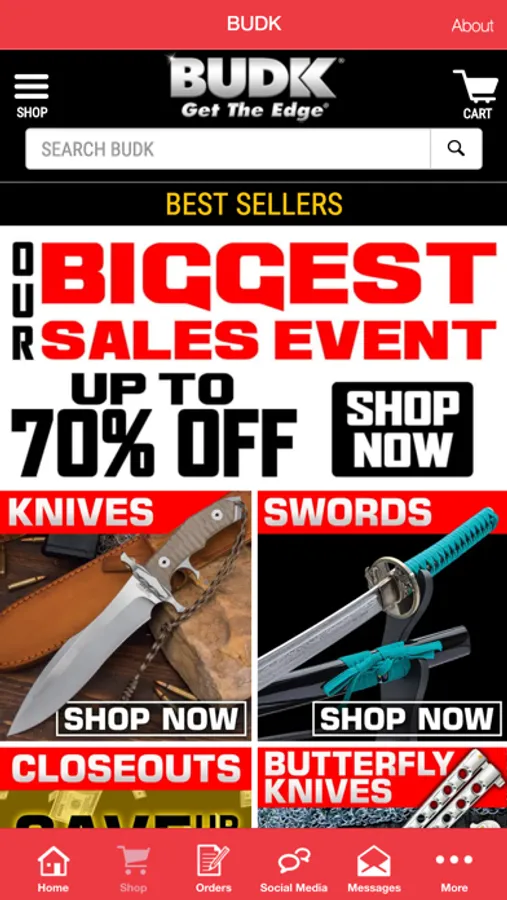 Welcome to BUDK where you'll find the largest selections of swords and knives in the world! We also carry an extensive array of survival gear and military surplus for camping and all your outdoor adventures. Whether you're searching for handmade katana swords or pocket knives, BUDK has it all at the lowest prices online!