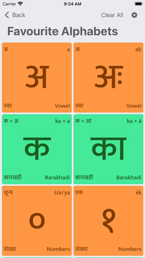 7. Finally, in the Favourites section, you can mark any alphabet you want to revisit later. This section will make it easy to find and practice your favourites again.