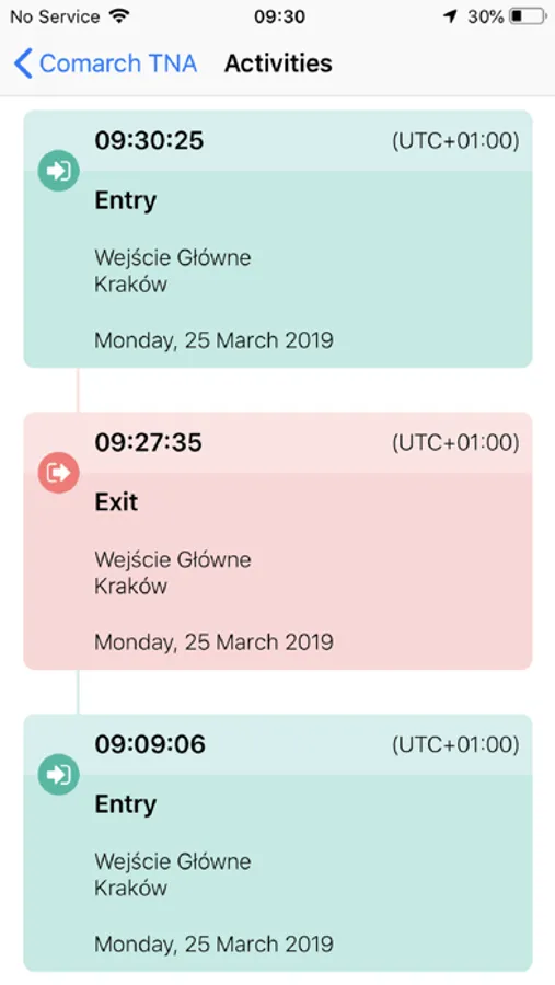 Thanks to Comarch TNA application along with Comarch devices, you can inform your employer about your presence without the need of having a card registering when you enter and leave work. Such card can be replaced with mobile phone with our mobile application installed. There’s only need to be Comarch device located in a place in your company where you walk by every day and then you move your mobile phone close to the device when starting another day of work. As a result, the system automatically recognizes to whom the mobile device belongs and saves appropriate information, such as time and place.