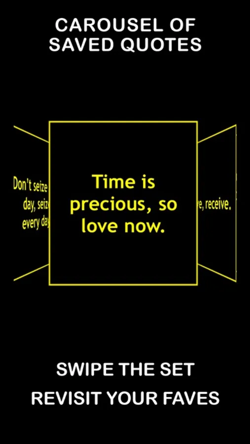 • COOL STYLE: Large format quotes in bold yellow type. Swipe any message to engage the carousel action.
