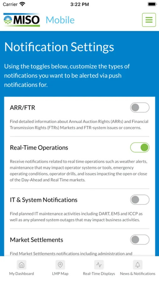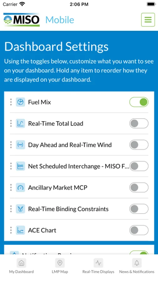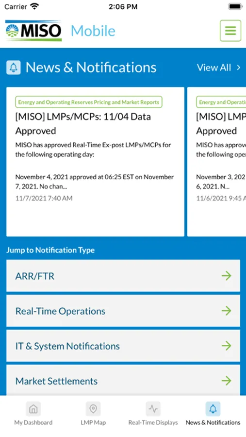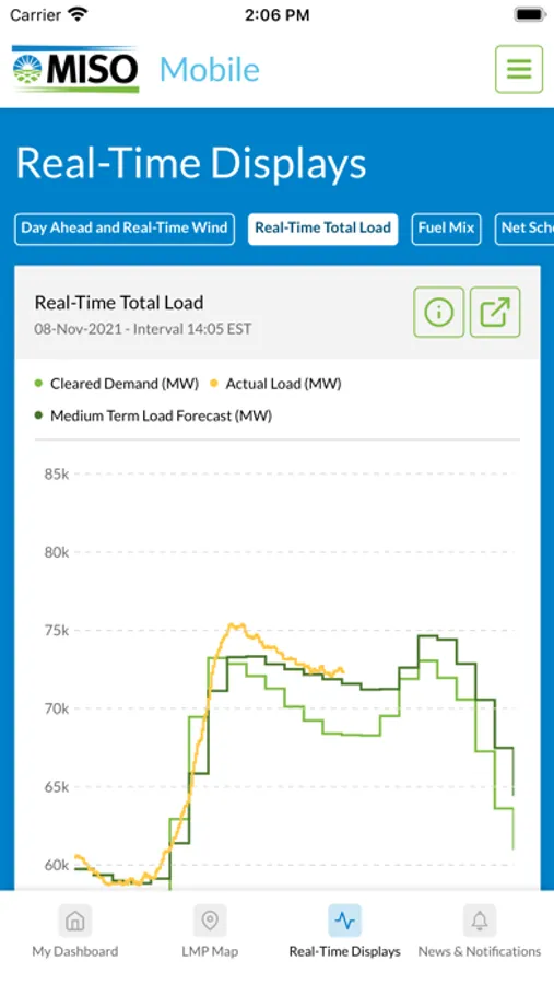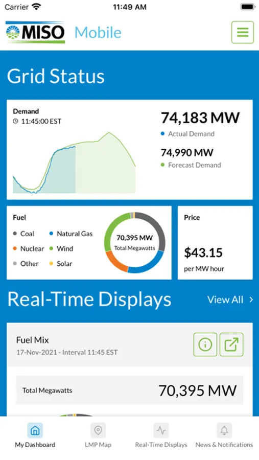 Visualize MISO’s world-class energy markets in real time. MISO Mobile enables 24/7 grid condition monitoring, including energy supply and demand, prices, fuel mix, and real-time system notifications.