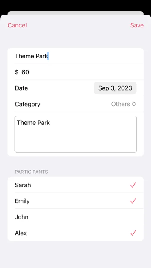 3. Receipt Records: Add expenses and assign them to specific pals. With Expense Split, you'll always have a fair receipt record at your fingertips.