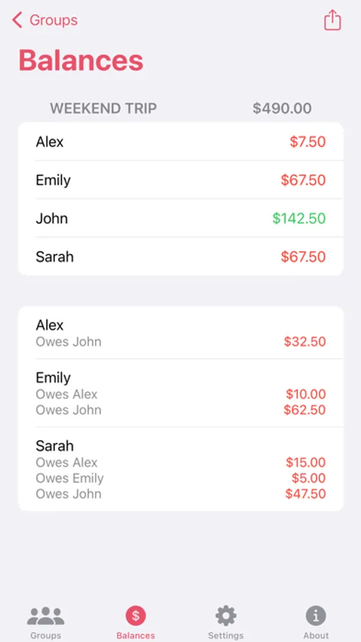 4. IOU, No More: Check who owes you and who you owe. Settle the score and clear the tabs right within the app.