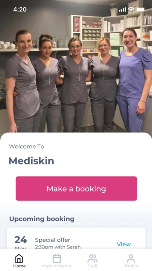 The Mediskin app makes booking your appointments and managing your loyalty points even easier. You're just a few taps away from feeling good and looking great!