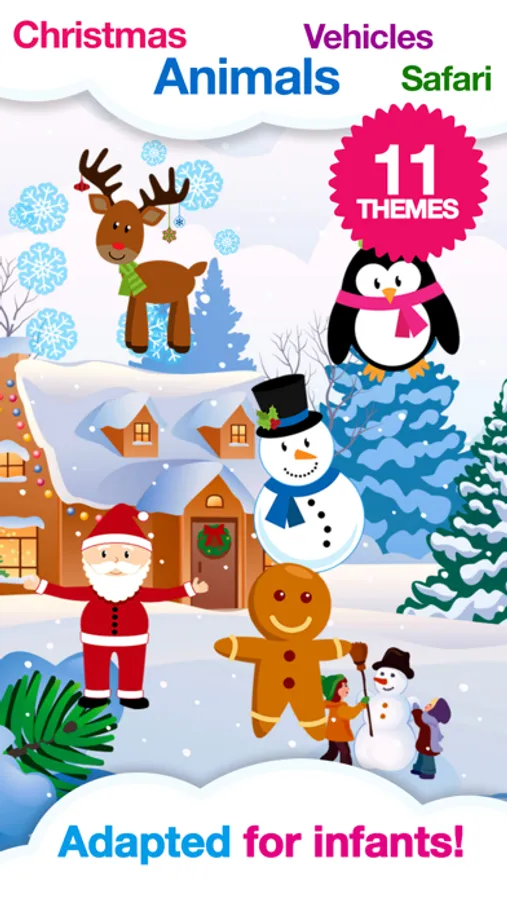 - 11 different themes including Farm and Wild Animals, Christmas, Birds, Underwater World and Sea Animals, Vehicles, Musical Instruments, Space and many other exciting things to play & learn.