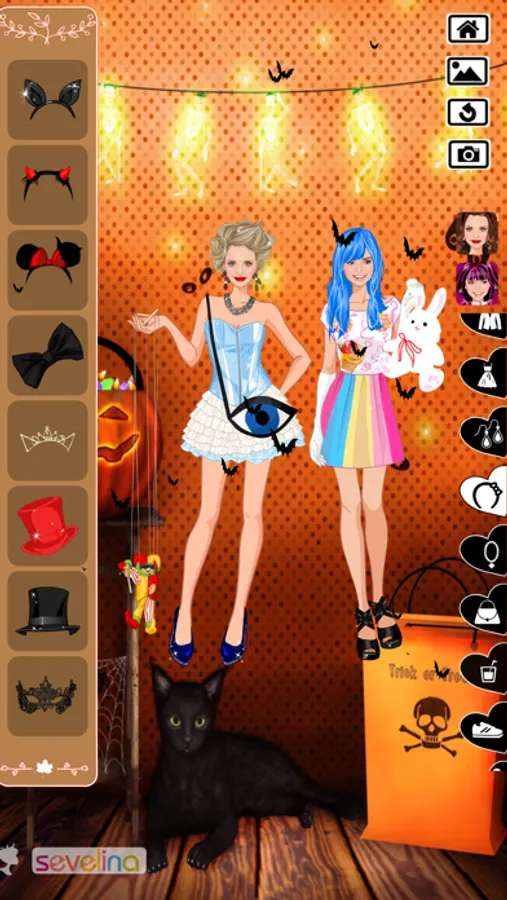 The vast choice of dress in this game will make it a more interesting dress up process for girls like you. So follow the advice of Sevelina and you will not be disappointed while playing this dress up game. The more you play this game the easier it will be later on to find the best dress for your party on this Halloween. Just install the Sevelina Halloween Dress Up game and you will not need an internet connection to play it anytime you wish. Sevelina wishes to help you for your best dress up.