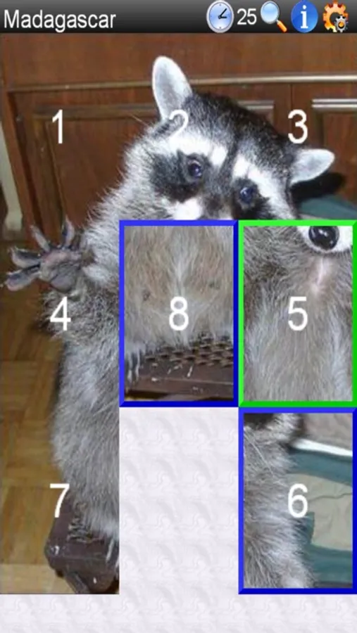 Use menu to switch between drag-n-drop and slide (15 puzzle) modes, control complexity, turn hints/music on or off or check scores.